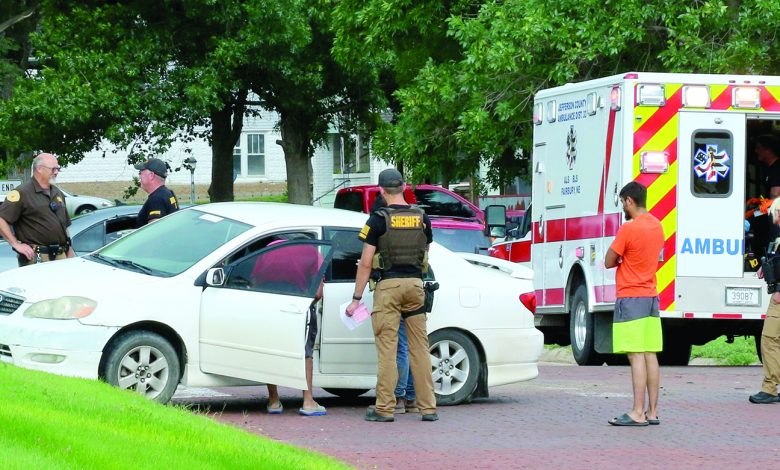 At approximately 12:15 p.m., on Monday, July 21, Ambulance District #33 was called to the scene of a two-vehicle accident at 9th and G Streets in Fairbury. One occupant was reported to be pregnant but no other details were available as of press time.