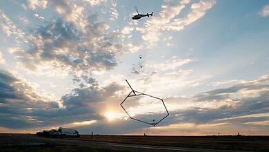 Beginning earlier this week, a helicopter towing a large hoop from a cable has been making low-level flights over portions…