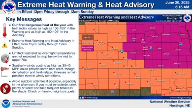 Dangerous heat is forecasted by the National Weather Service through the weekend for a large area of the central plains,…