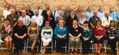 Fairbury High School Class of 1968-55th Reunion was held Sept. 21-23. Back: Bruce Bauer, Dale Klaumann, Randy Bartling, Don King, Ken Hoge, Ed Friesen, Jerry Johnson, Ron Scheips, Larry Bedlan, Darrell Maatsch, Jim Haberman; Middle: John Milligan, Chris Cassel, Doug Rosener, Shelley Boyd Bartling, Nancy Hoppe Lowe, Jim Kenney, Patty Grummert Pohlmann, Tom Smiley, Delbert …